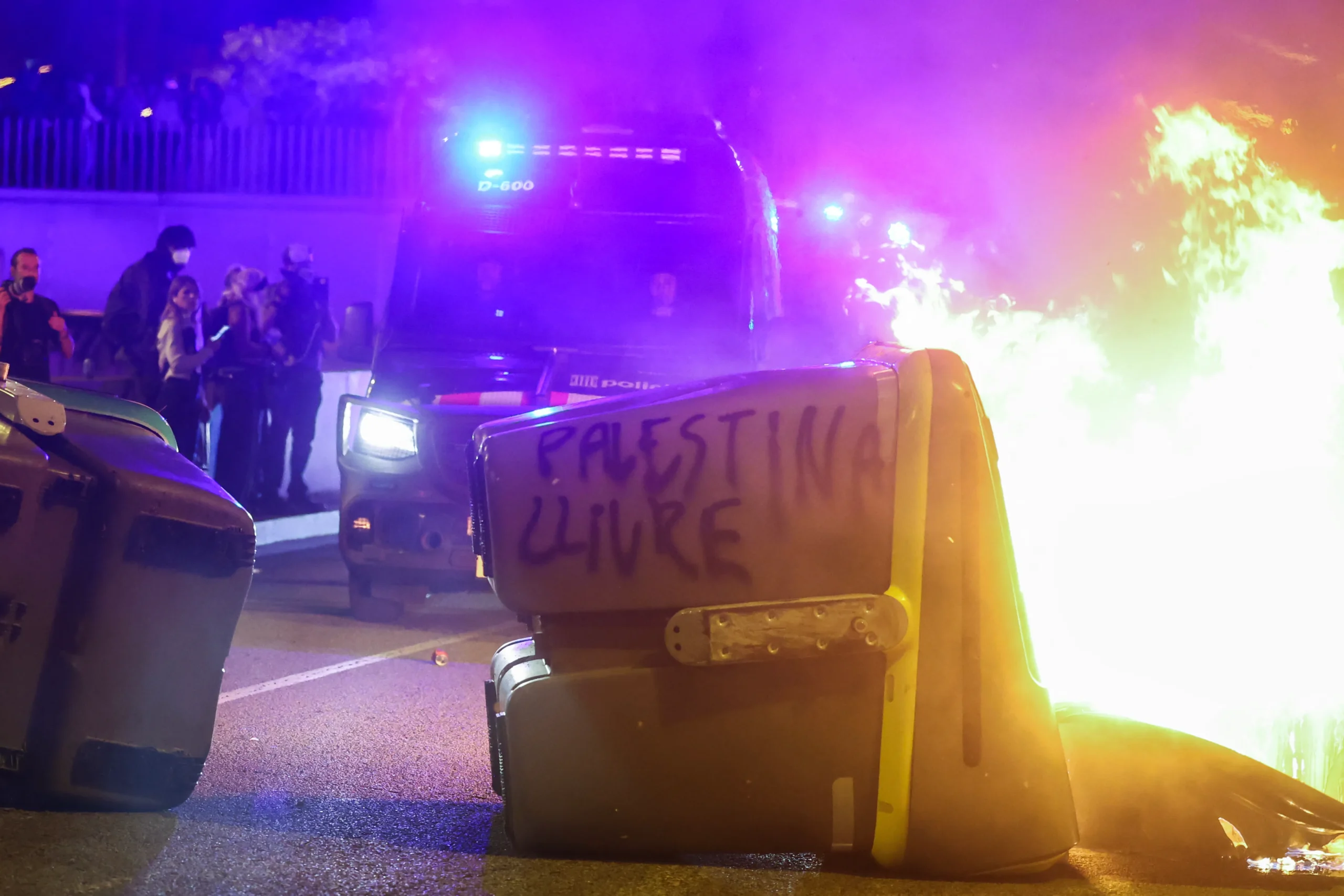 Demonstranci podpalali pojemniki na śmieci, tworząc barykady między sobą a siłami policyjnymi, które później przystąpiły do rozpędzania tłumu. W internecie krążą także nagrania pokazujące uczestników protestu odpalających fajerwerki w kierunku budynku konsulatu.