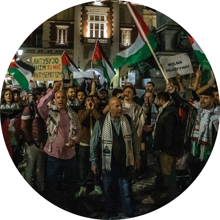 Polsko-Palestyńska Kampania Solidarności to grupa polskich i polsko-palestyńskich aktywistów działających w ruchu solidarności z Palestyną. Część z nas była w Strefie Gazy, na Zachodnim Brzegu, w obozach dla uchodźców w Jordanii, Libanie i Syrii. Nasze działania wynikają z niezgody na ogrom niesprawiedliwości, której byliśmy świadkami. Wywodzimy się z ruchów sprawiedliwości społecznej, organizacji ekologicznych, antyfaszystowskich, związków zawodowych i grup organizujących społeczeństwo obywatelskie.