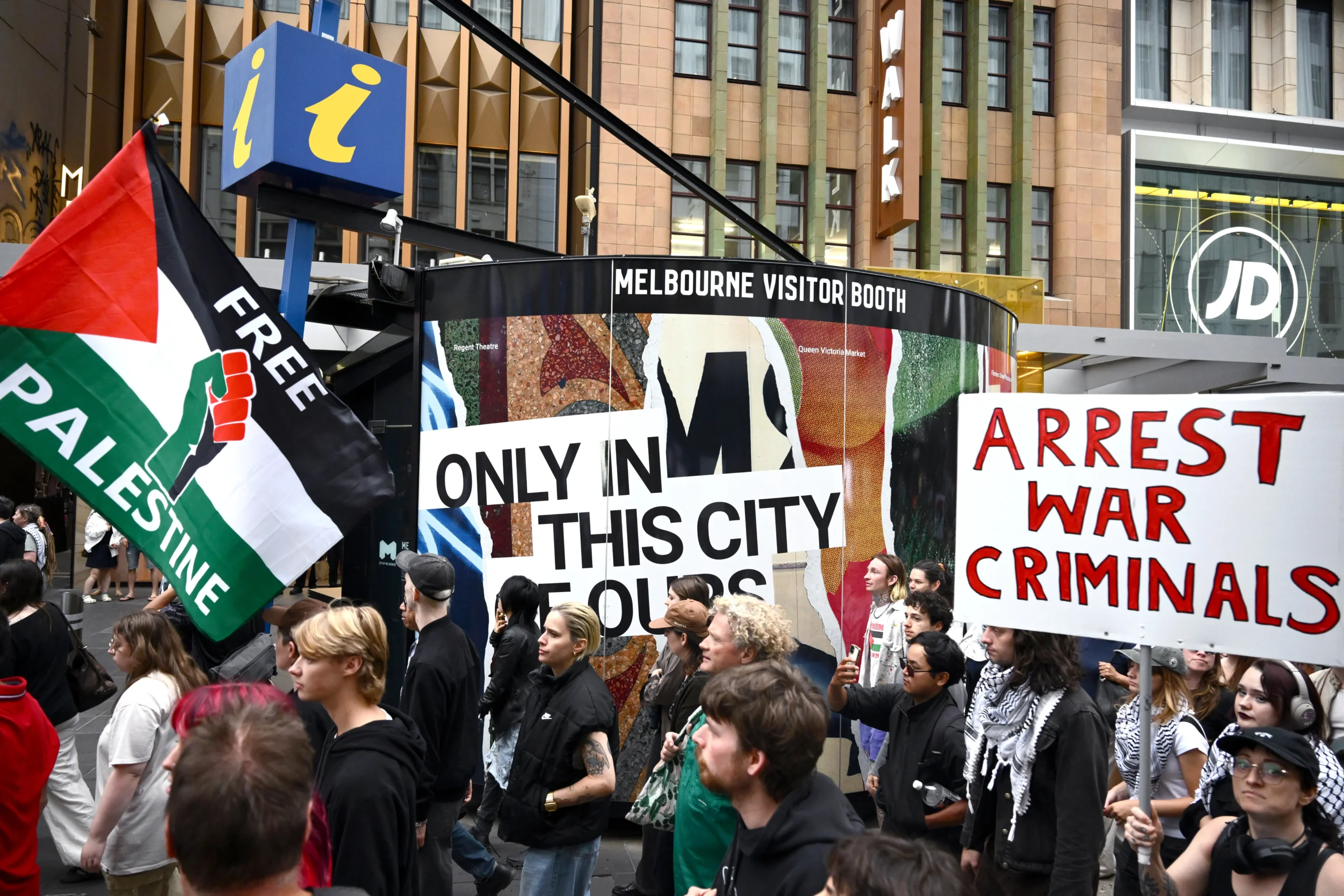 Równolegle w Melbourne około pięciu tysięcy osób zgromadziło się przed dworcem Flinders Street, po czym przemaszerowało w kierunku Biblioteki Stanowej, blokując ruch w godzinach szczytu. Uczestnicy protestu domagali się zakończenia izraelskiej okupacji terytoriów palestyńskich oraz zaprzestania bezkarności izraelskich władz.